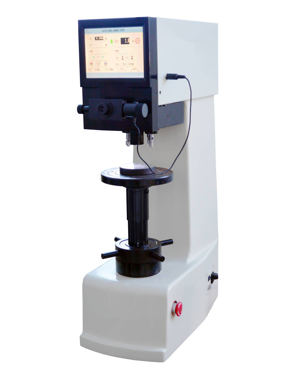HBST-3000型數(shù)顯布氏硬度計是精密的機械結(jié)構(gòu)和微機控制閉環(huán)系統(tǒng)的光、機、電一體化產(chǎn)品。儀器取消了砝碼,采用電動加卸試驗力,由0.5‰精度的壓力傳感器進行反饋,CPU控制并能對試驗中損失的試驗力進行自動補償。壓痕可在儀器上通過測微目鏡直接測量,并能在LCD顯示屏顯示壓痕的直徑以及當前設置狀態(tài)下自動顯示布氏硬度試驗(HBW)的范圍。在頁面上還能進行保荷時間的設置。